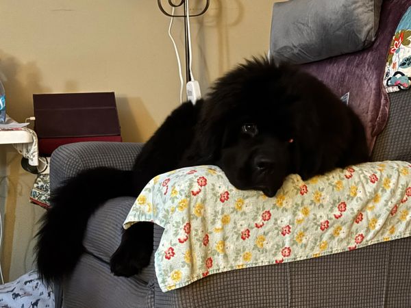 Seattle is the third generation of our breeding line. Her mother is Rigel and her grandmother is Scarlet, our foundation bitch. Seattle is a beautiful Newfoundland. Unfortunately, she developed a serious infection and had to have an emergency spay. Consequently, she cannot be bred to continue our line. However, she loves to work. She is a high drive Newfoundland, bounding with energy and curiosity. She loves to run, swim, pull the cart and just get and give love. She has begun training for water rescue and draft work. Stay tuned...you will see her do some great things.